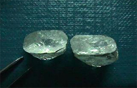 The 12.23ct. larger piece is bruted to a circular outline suited for a round brilliant. As simple as this process seems a great deal of skill is required to shape the rough to a round outline. If the bruter removes too much material a great deal of unnecessary weight can be lost.